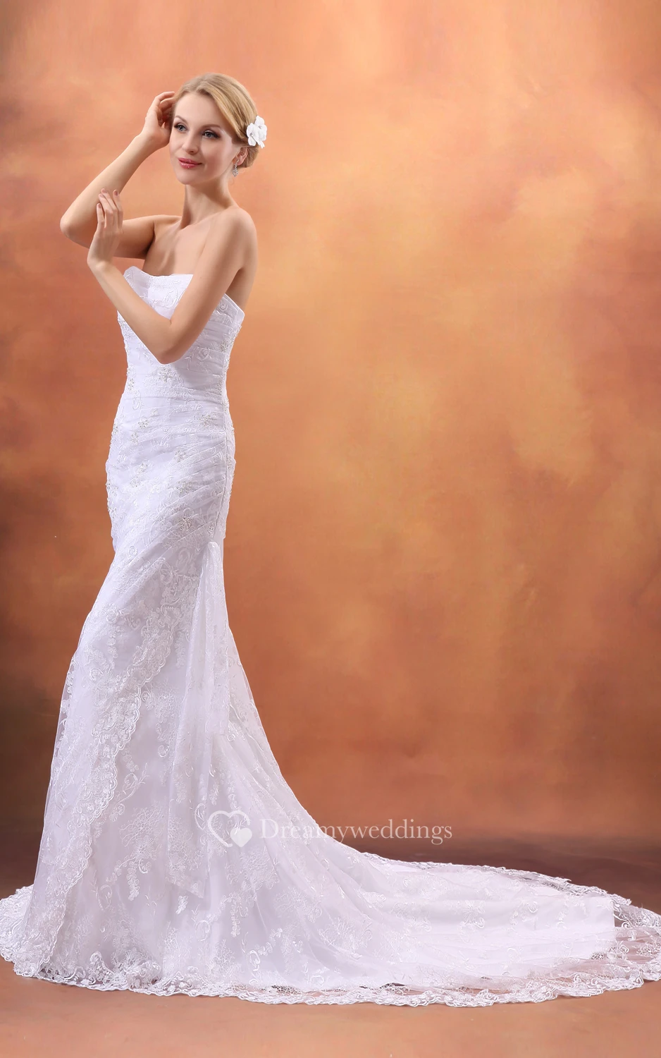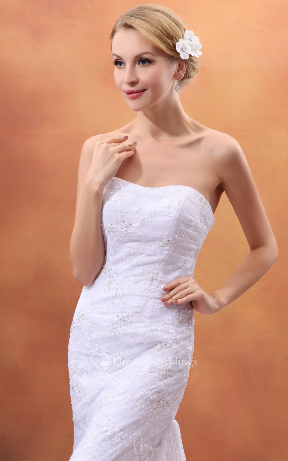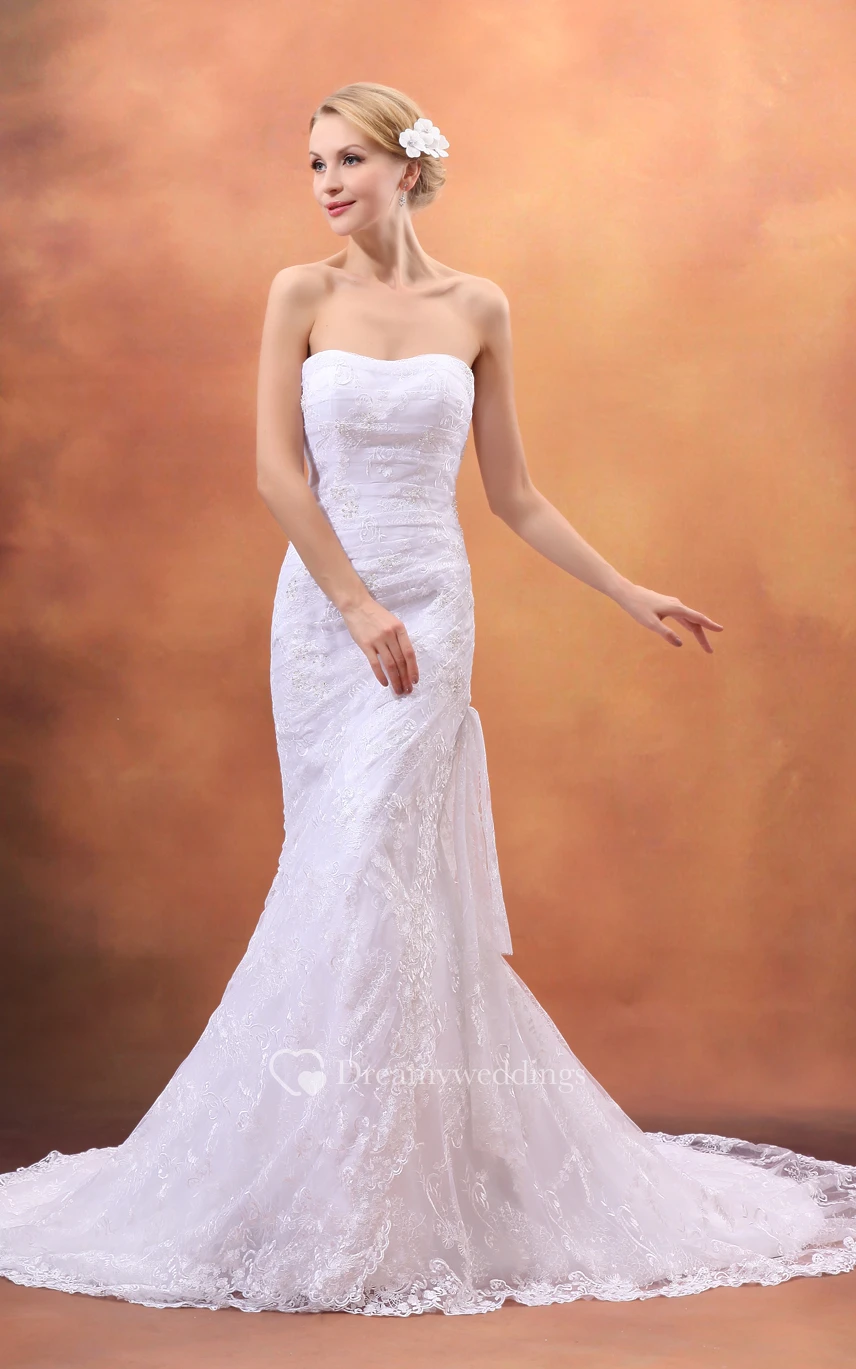 Refined Strapless Sheath Dress With Lace Appliques