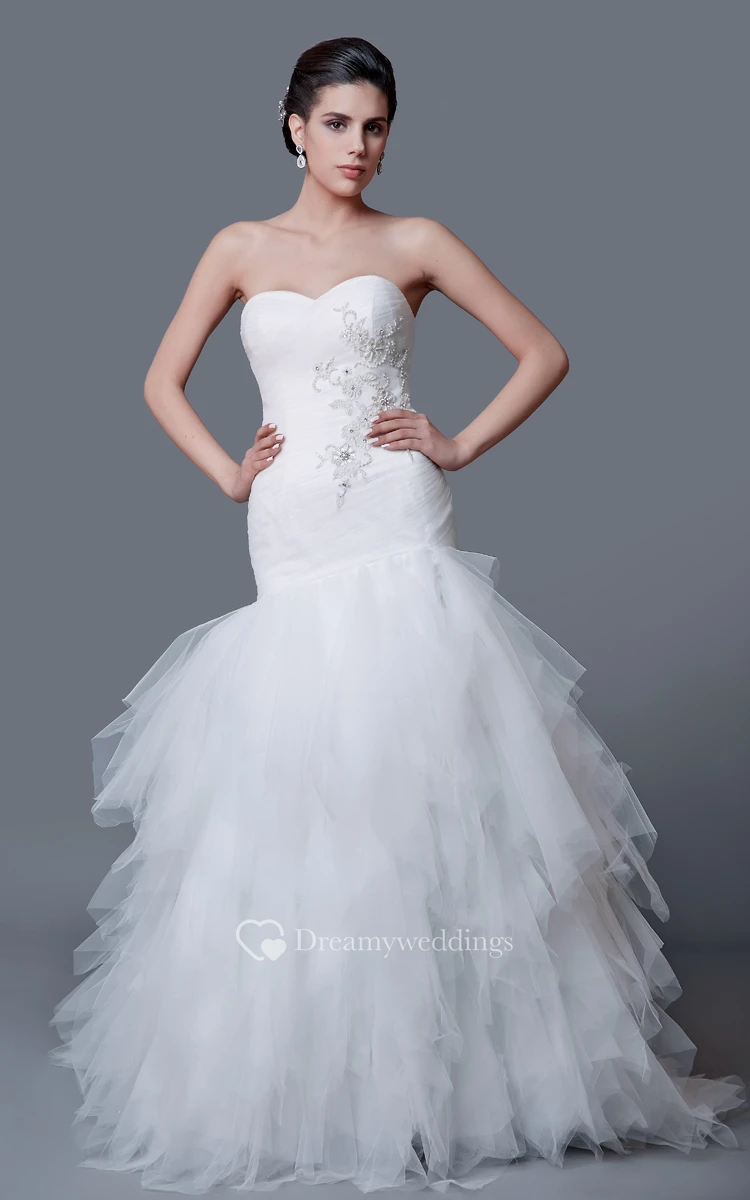 Refined Sweetheart Cascading Ruffled Tulle Mermaid Dress