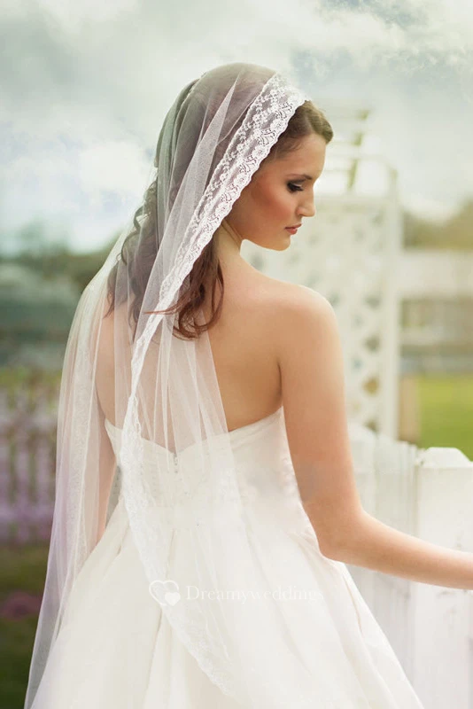 Retro Bohemian Soft Tulle Bridal Veil with Lace Applique