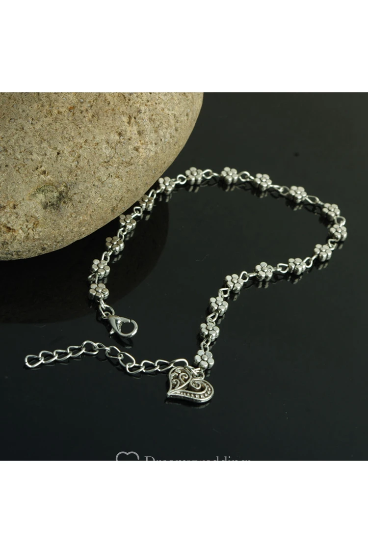 Retro Silver Heart-Shaped Anklet Jewelry 27Cm