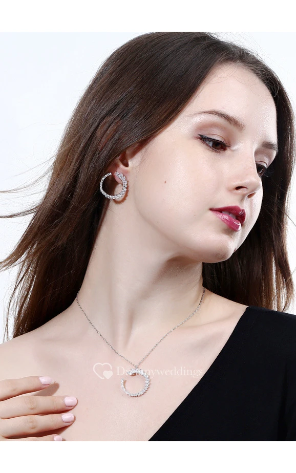 Romantic Bridal Rhinestone Necklace and Earrings Jewelry Set