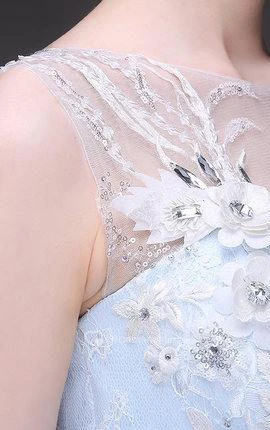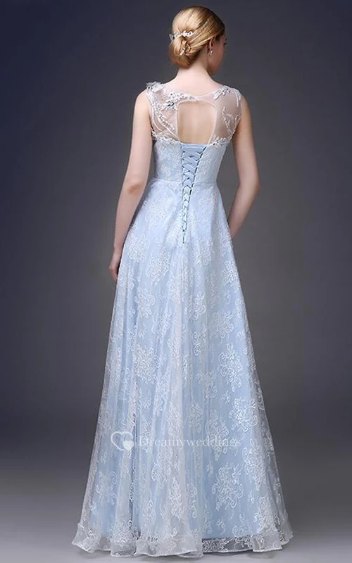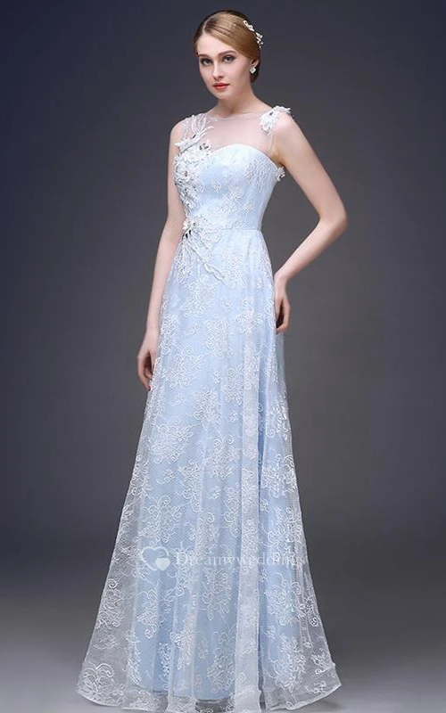 Romantic Jewel Neck A-Line Appliques Long Prom Dress