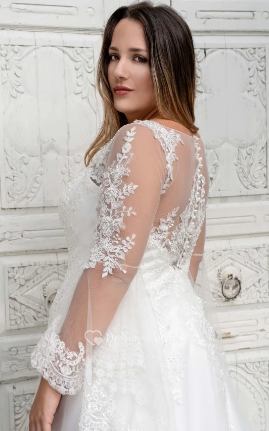 Romantic Lace Bateau Long Sleeve Appliques Wedding Dress With Button
