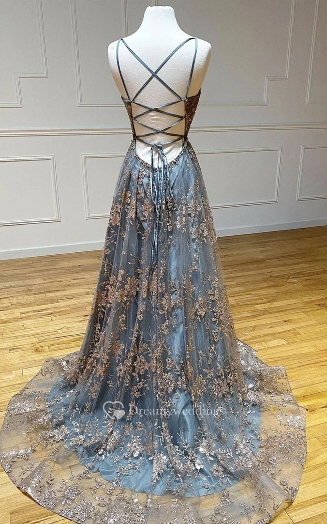 Romantic Sleeveless Floor-length Lace A Line Prom Dress with Appliques