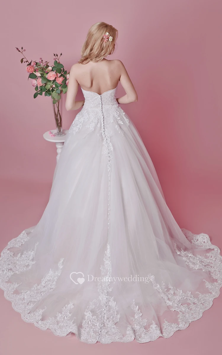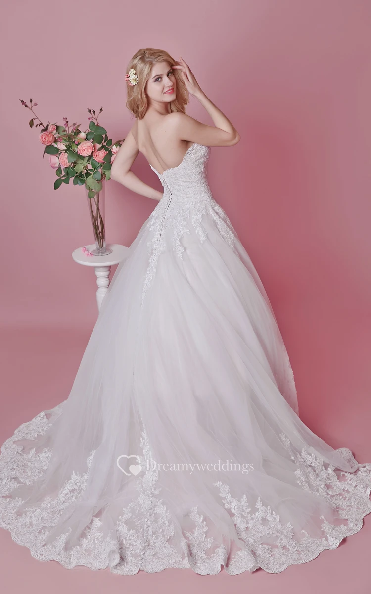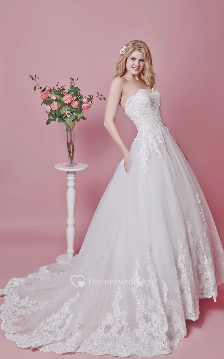 Romantic Sweetheart Floral Lace Applique and English Net Wedding Ball Gown