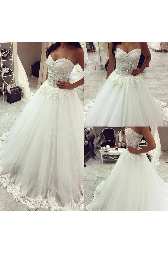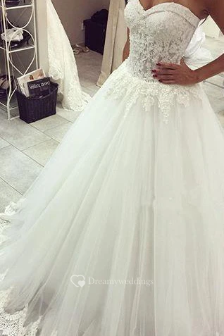 Romantic Tulle Lace Appliques Princess Wedding Dress Sweetheart