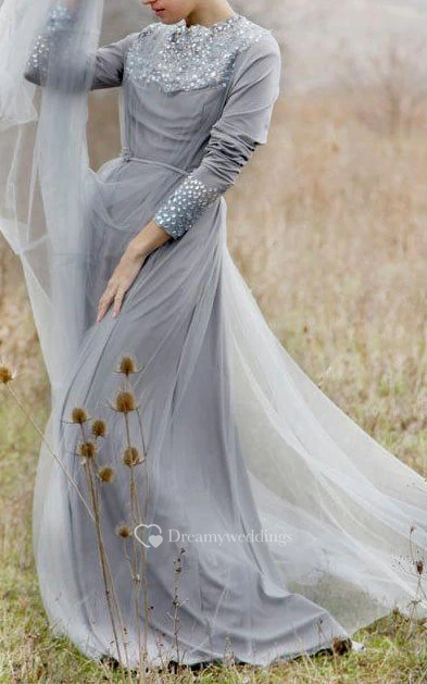Romantic Wedding Grey Wedding Ballet Inspired Wedding Gown Rustic Wedding Lace Wedding Gown Chiffon Dress