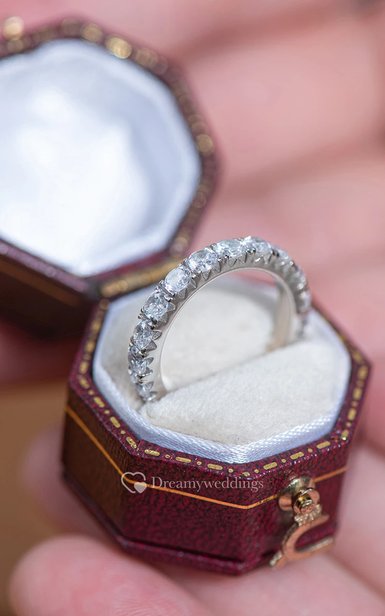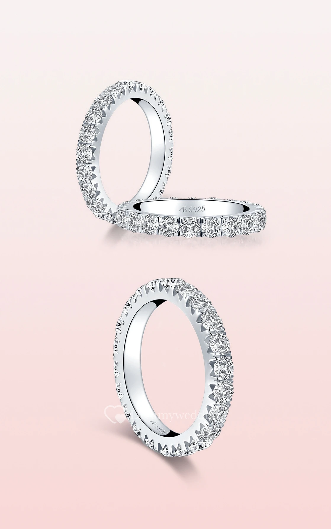 Round Cut Side Stones Rhinestone 925 Silver Wedding Rings