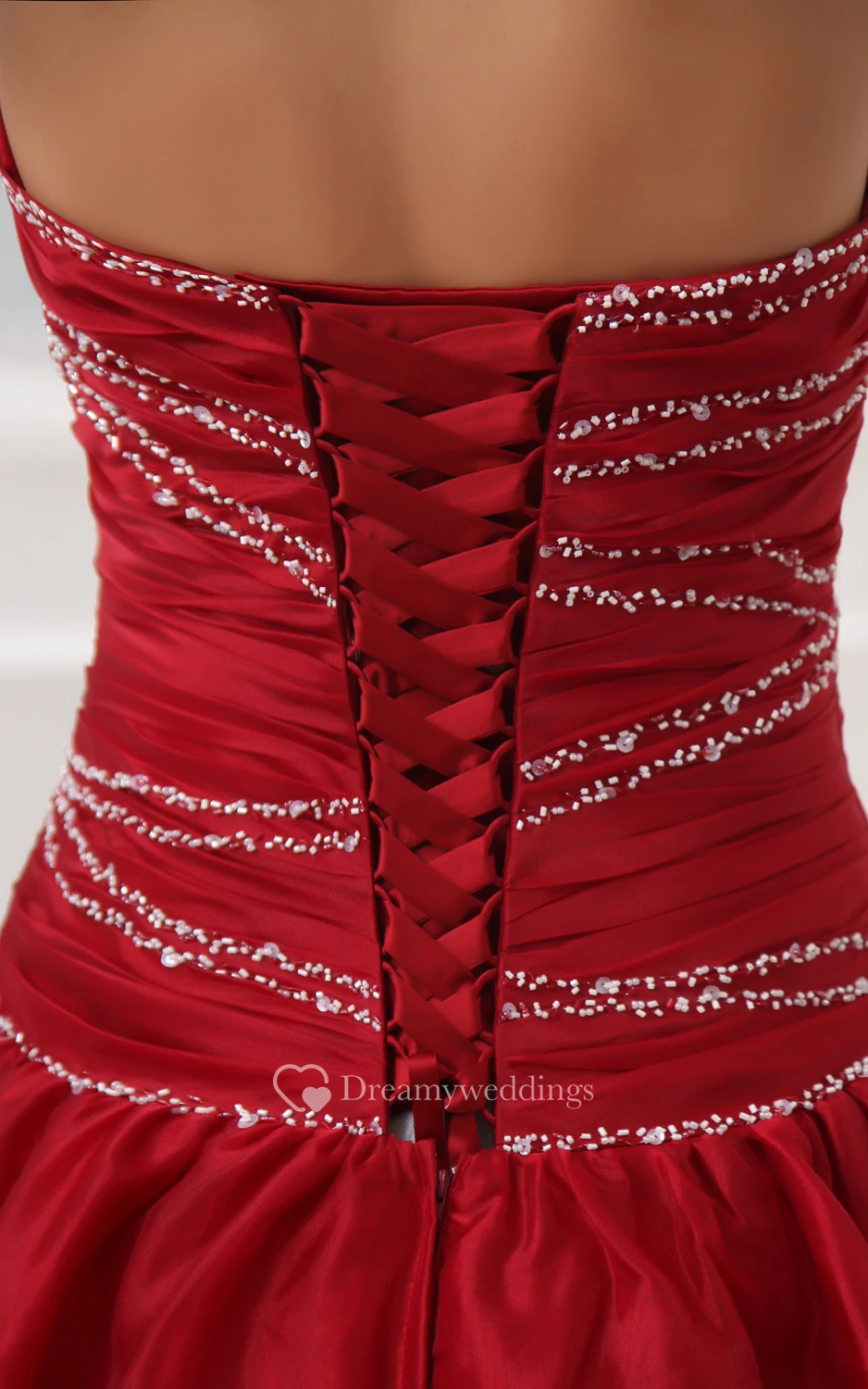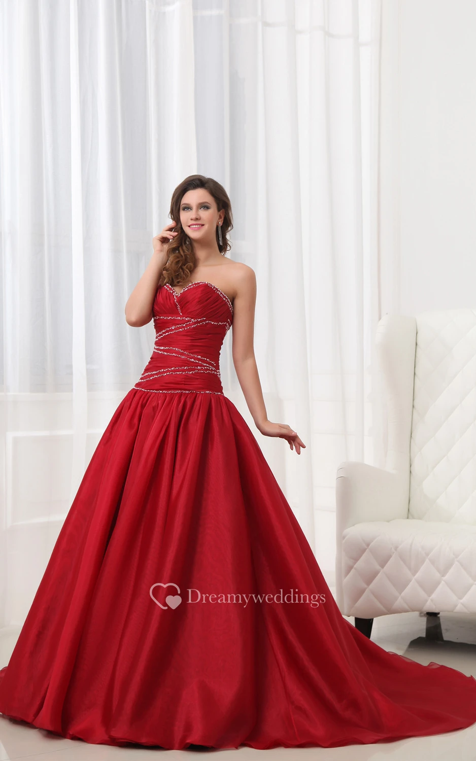 Ruby Taffeta Sweetheart A-Line Dress With Ruching and Pleating
