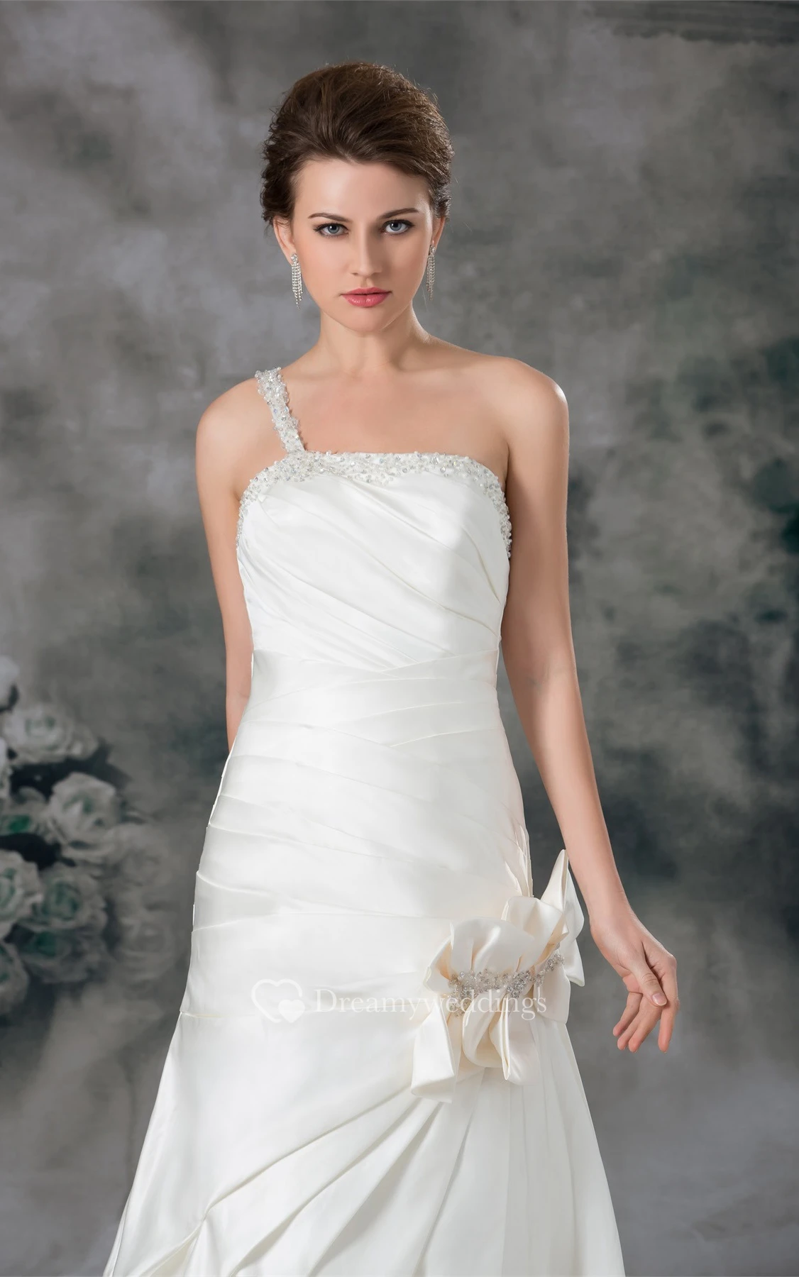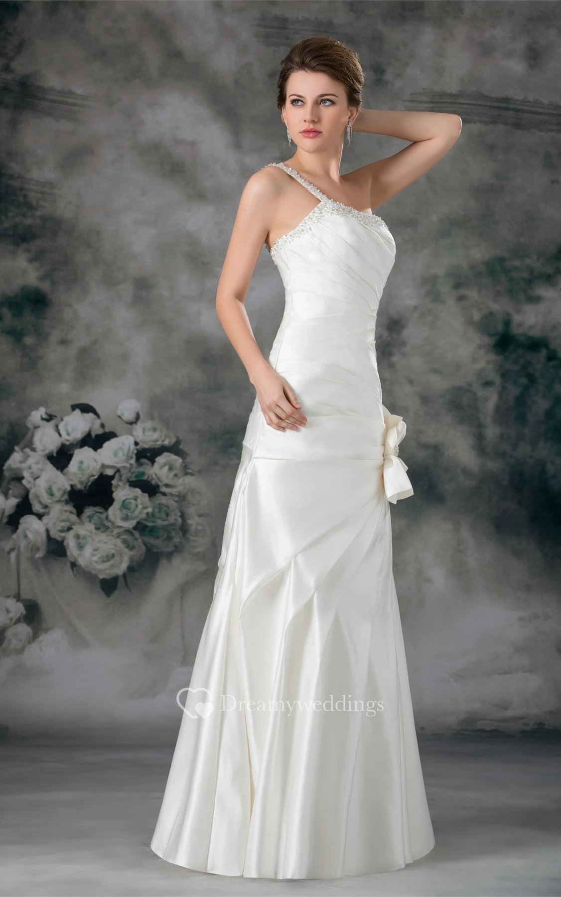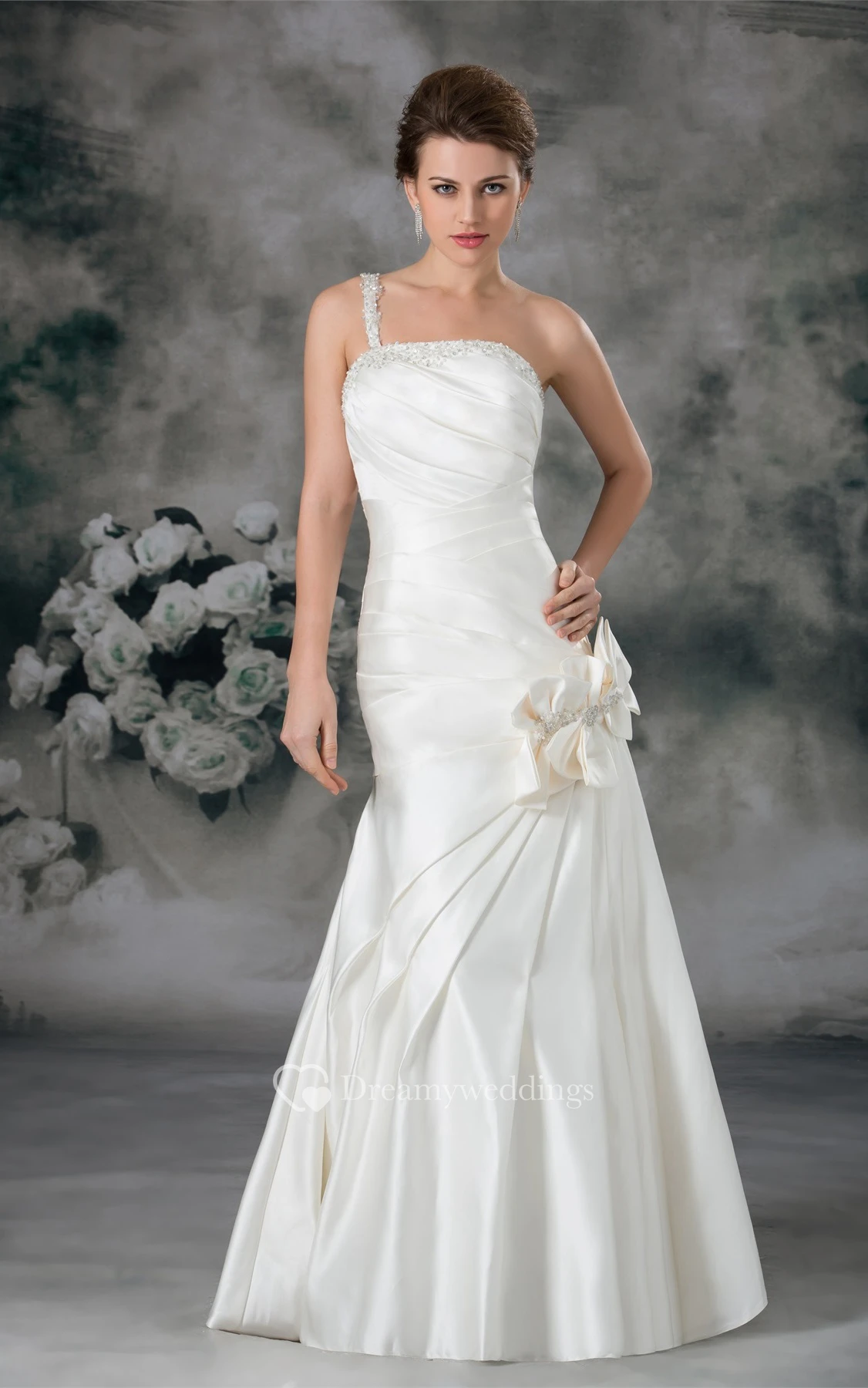Ruched A-Line Mermaid Single Strap and Gown With Flower