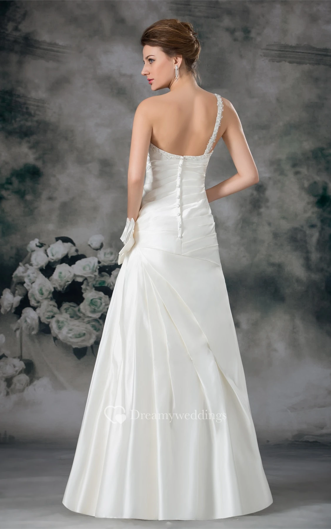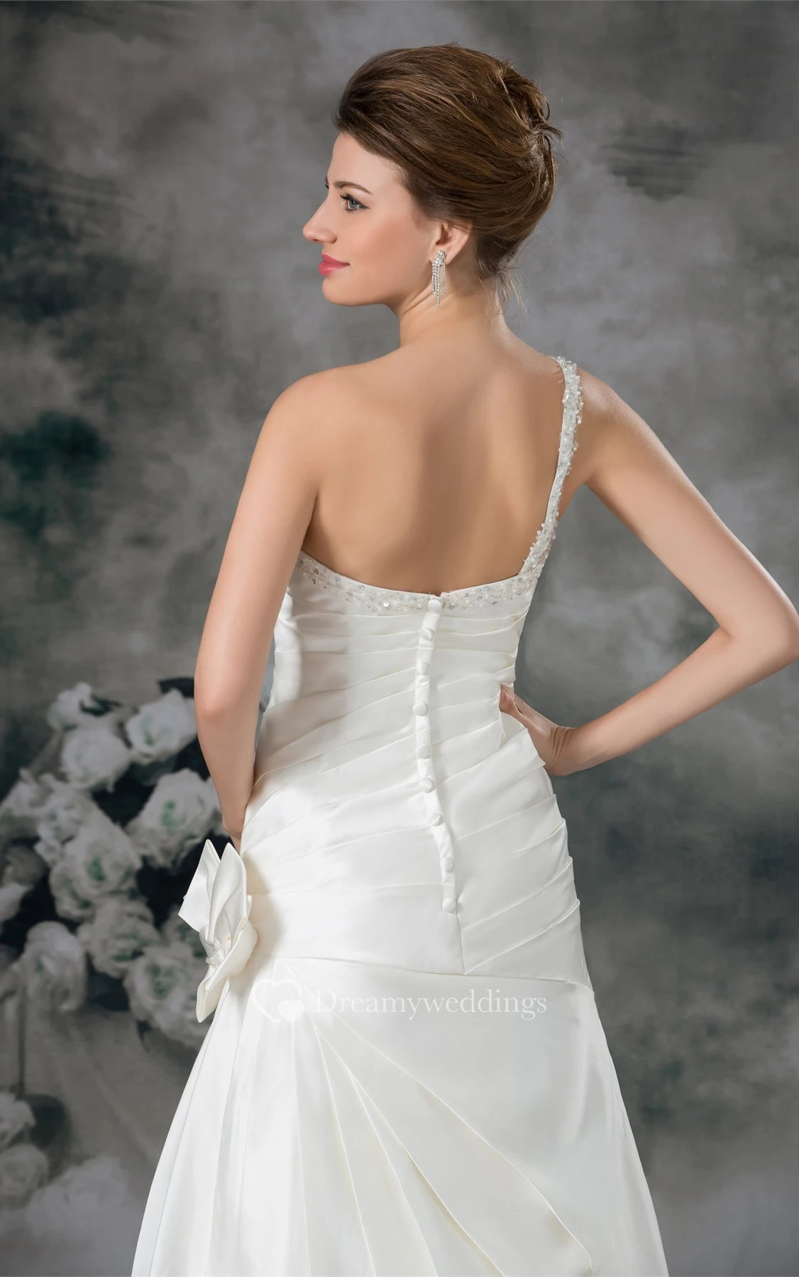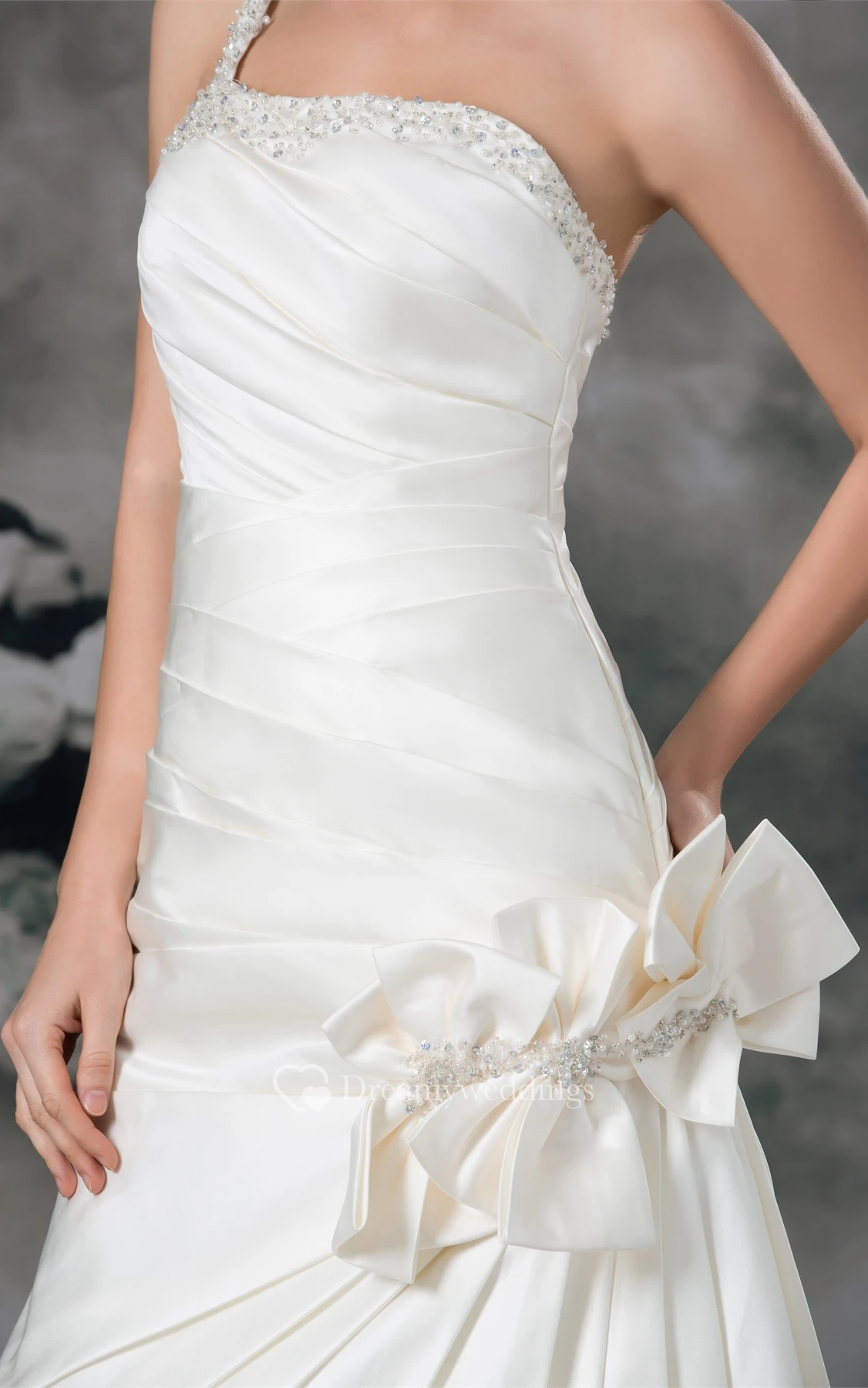 Ruched A-Line Mermaid Single Strap and Gown With Flower