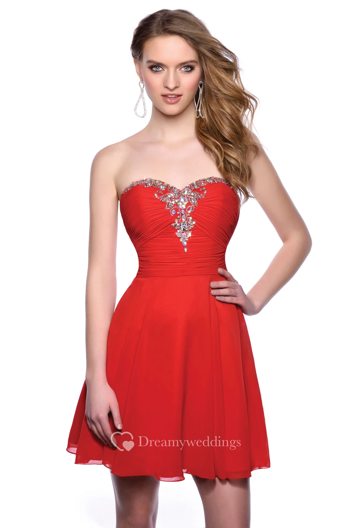 Ruched Bodice A-Line Sweetheart Chiffon Homecoming Dress Featuring Crystal Detailing