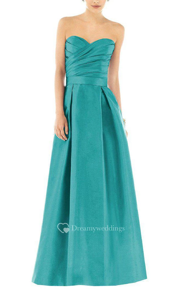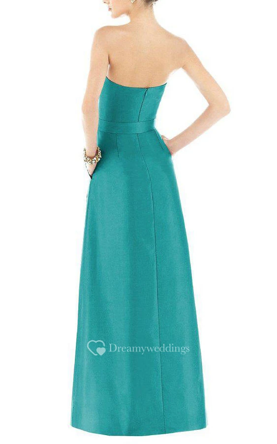 Ruched Bodice Long Satin Dress with Pleats