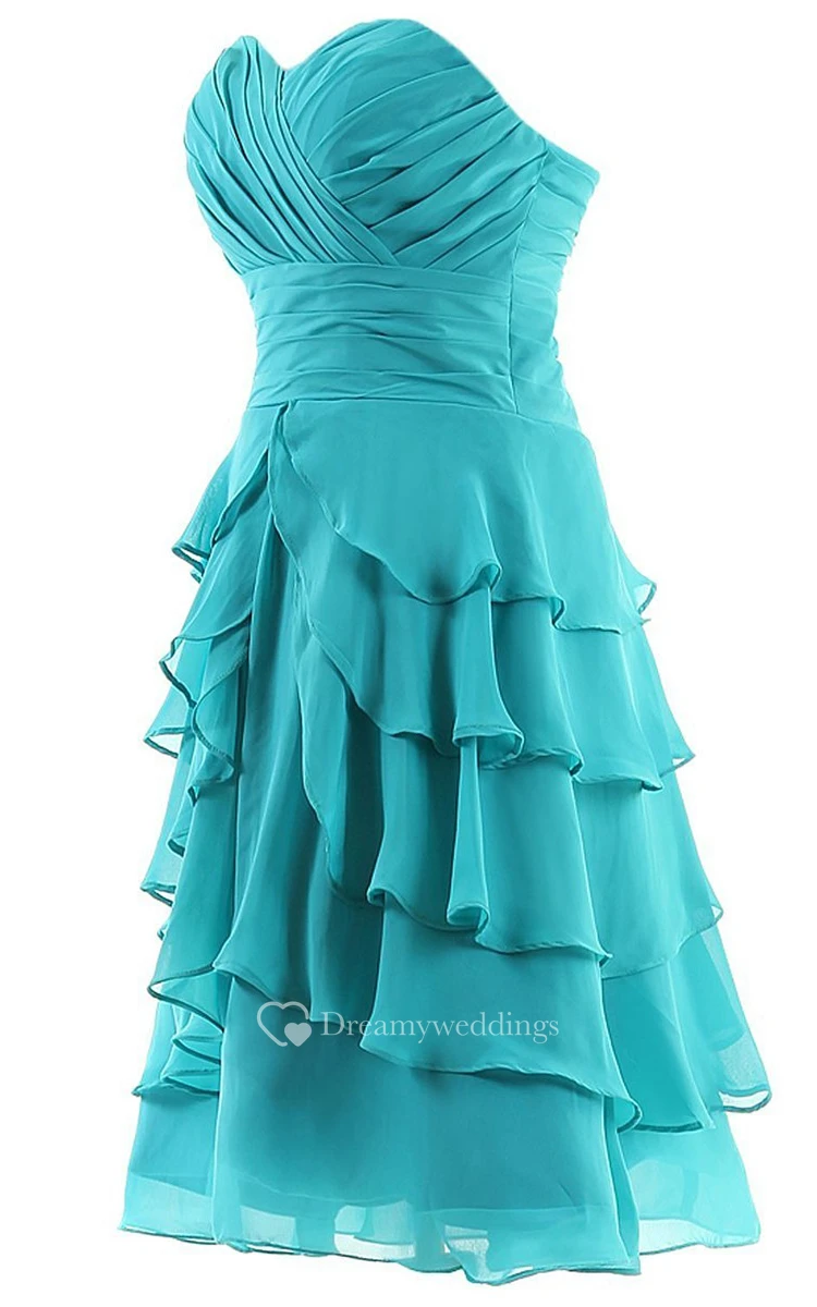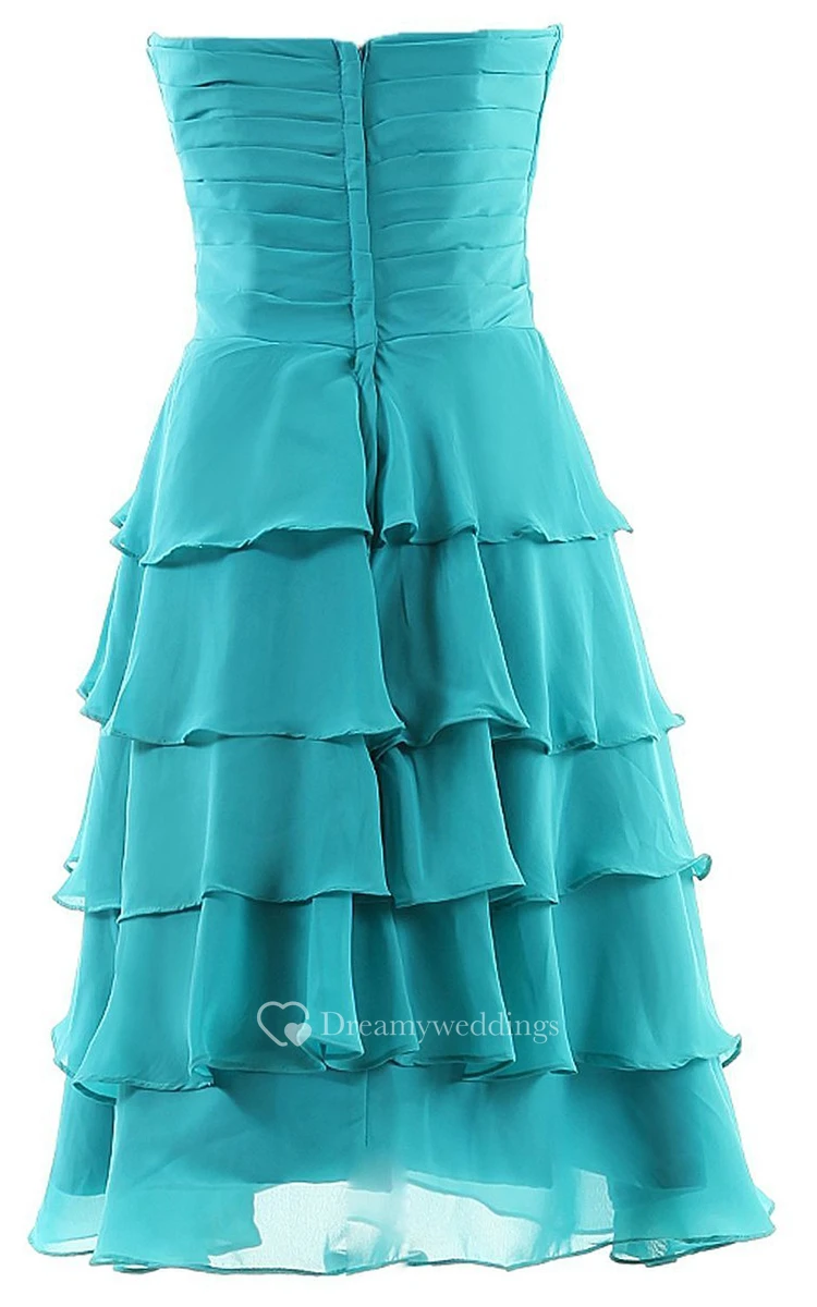 Ruched Bust Layered Chiffon Dress With Zipper Back
