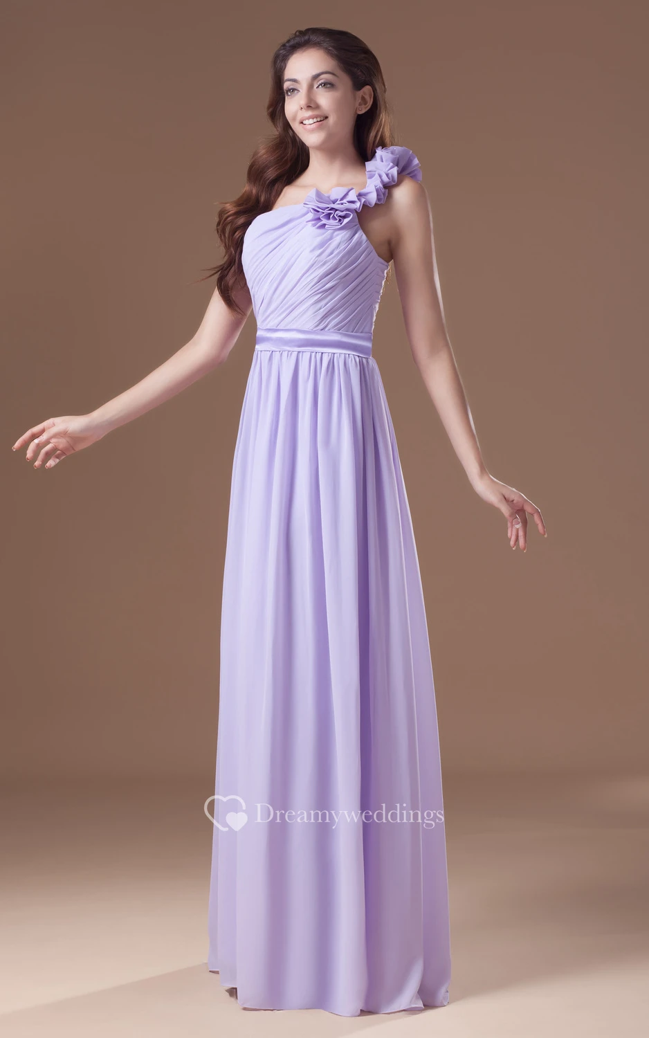 Ruched Floor-Length Chiffon Dress With Floral Strap