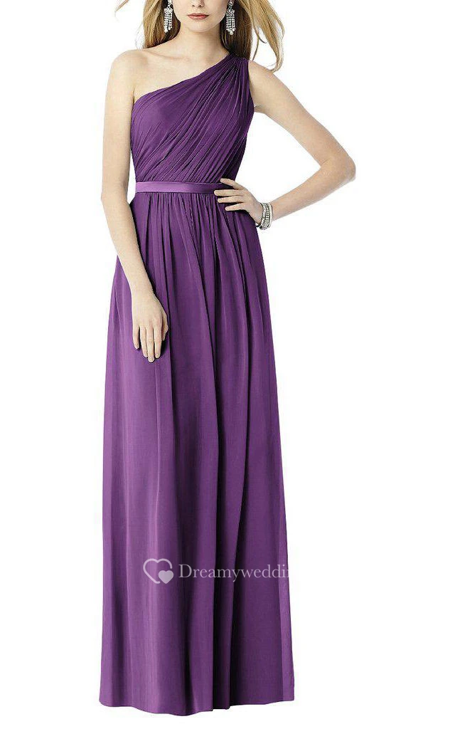 Ruched One Shoulder Chiffon Long Bridesmaid Dress