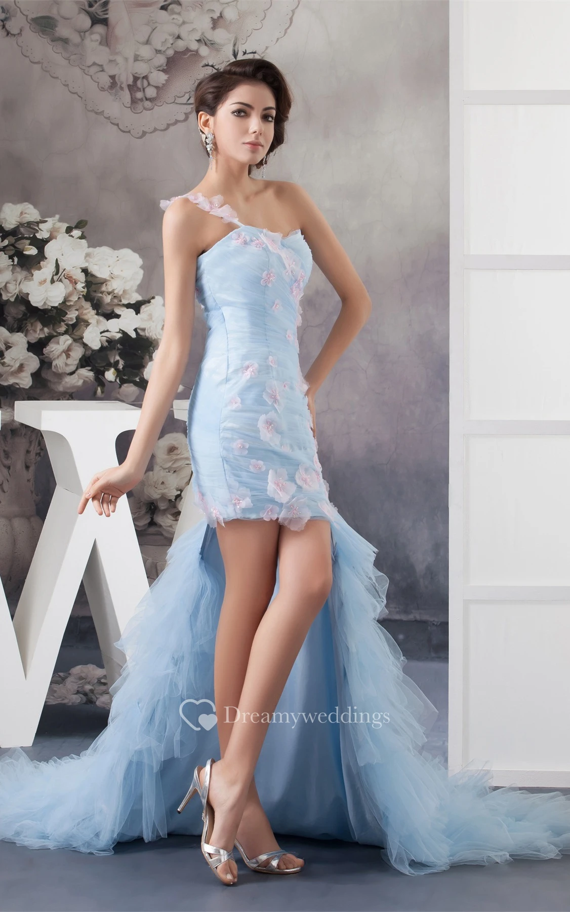 Ruched Short Pencil Keyhole Back and Dress With Flower