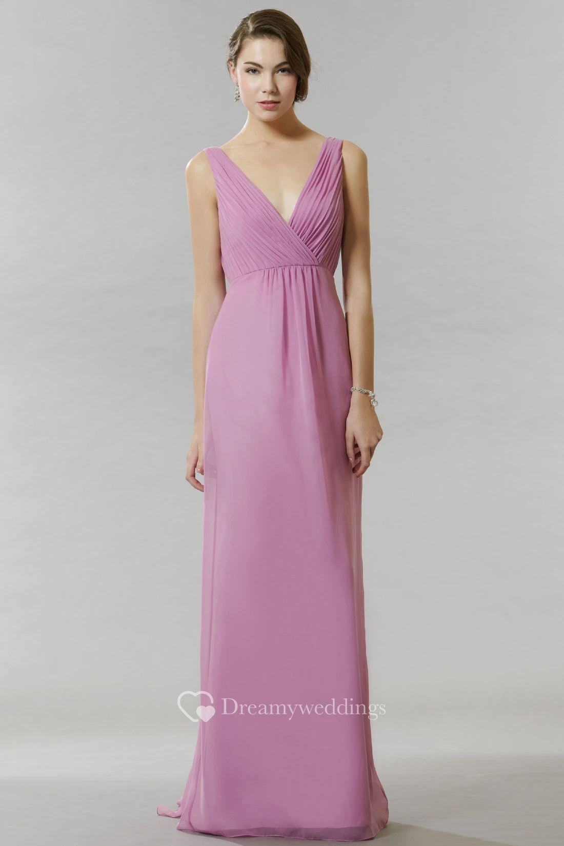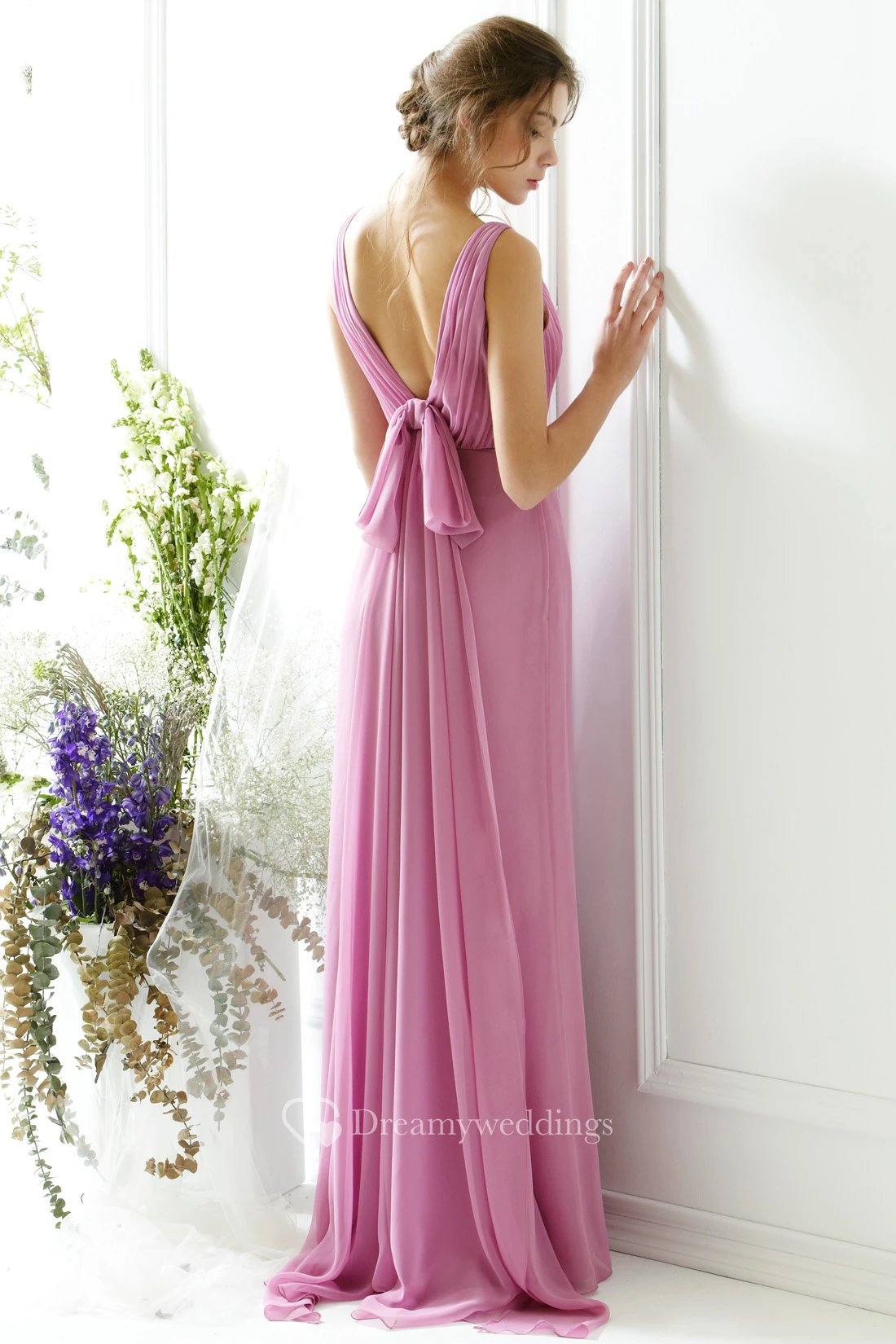 Ruched V-Neck Sleeveless Chiffon Bridesmaid Dress With Bow