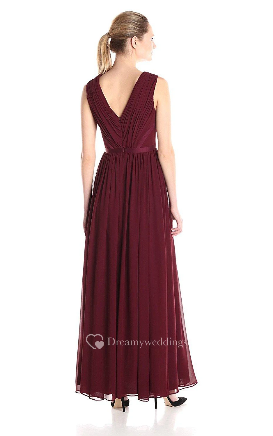 Ruching Zipper Low-v Back Straps Chiffon Dress