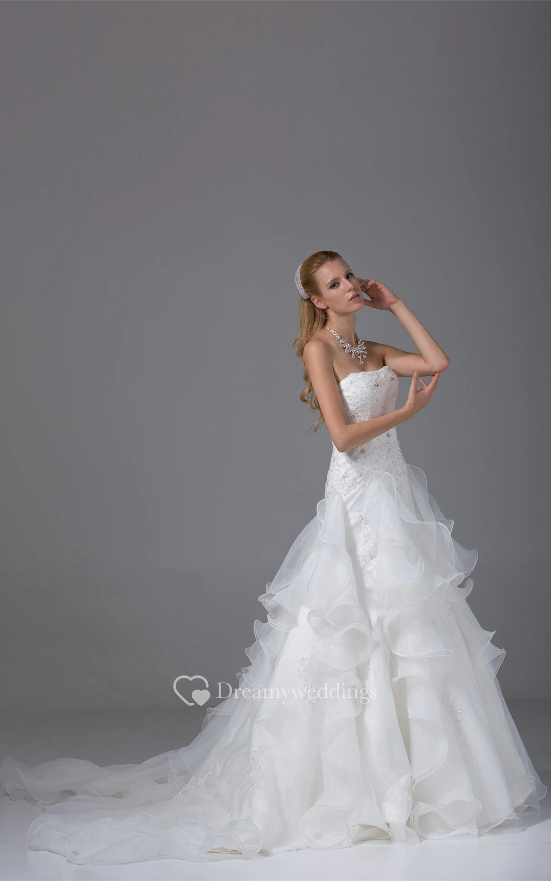 Ruffled A-Line Crystal Detailing and Gown With Appliques