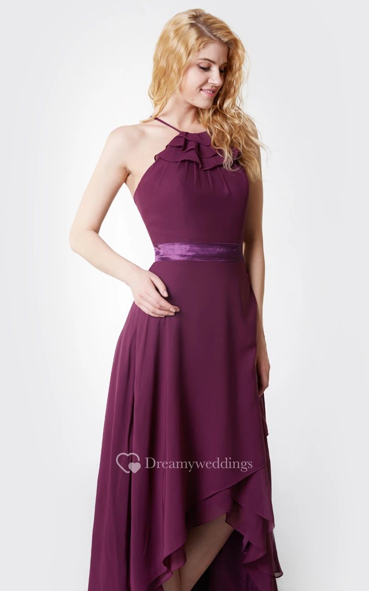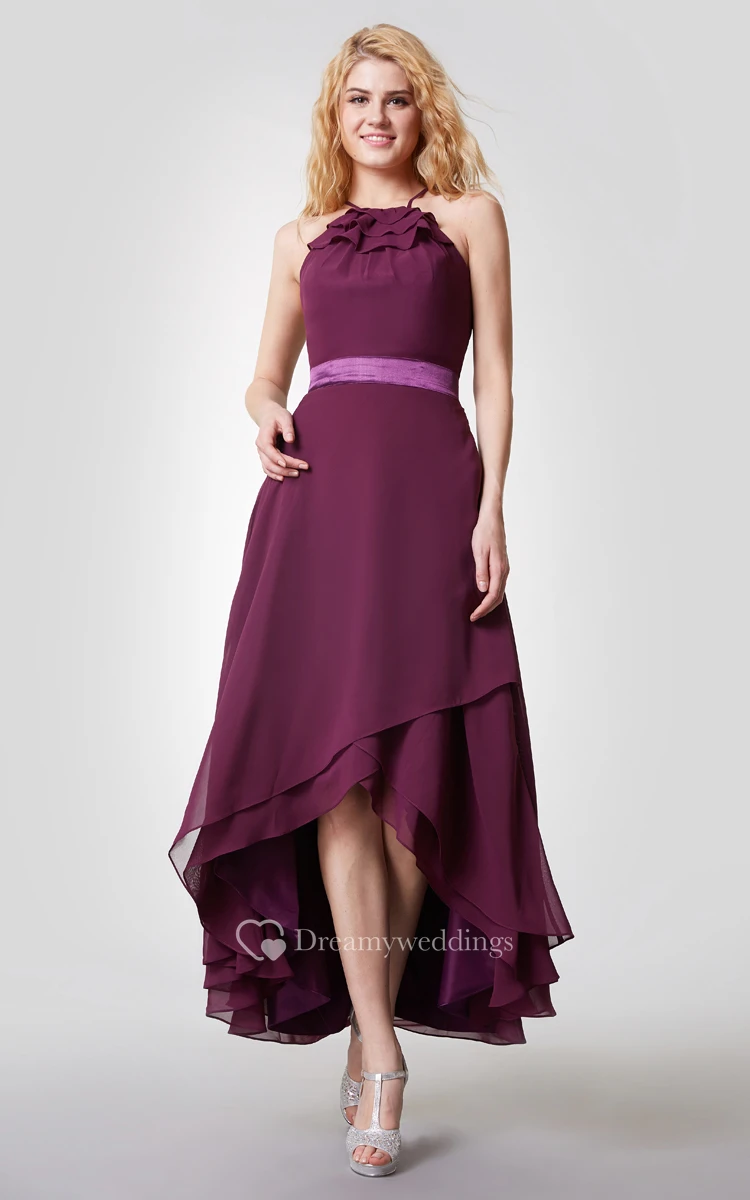 High-low skirt looks so new and unique. Tiered hemline with halter neckline and back straps make this dress stand out from other regular dresses. I am a fan of asymmetrical dresses and this one is a great choice. It looks so beautiful and suits any occasion.
