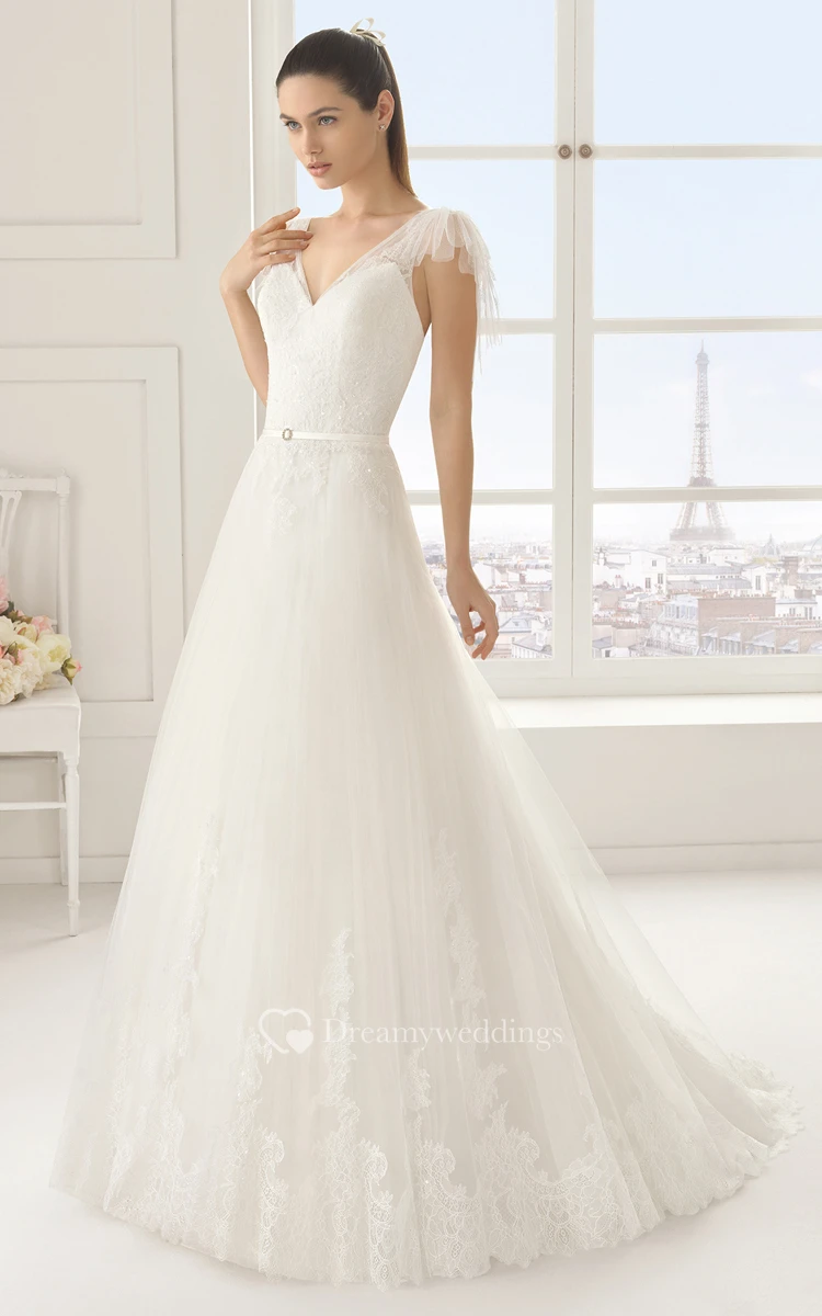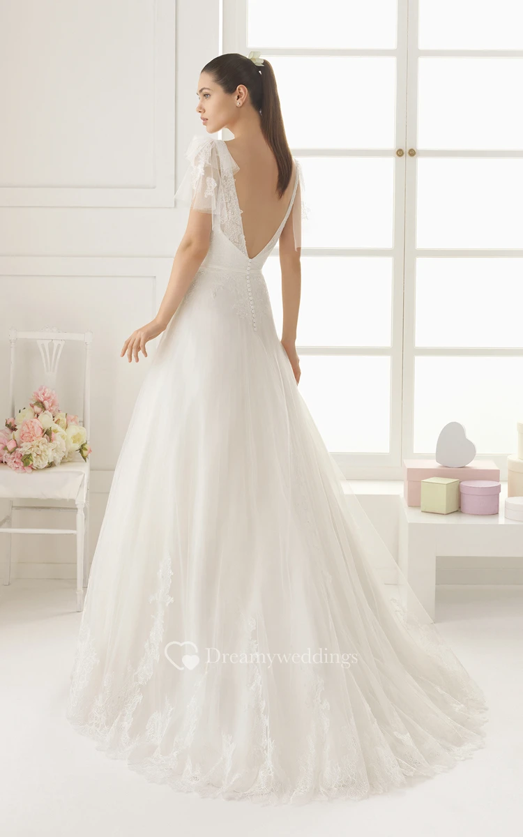 Ruffled V Back Dress With Butterfly Sleeves