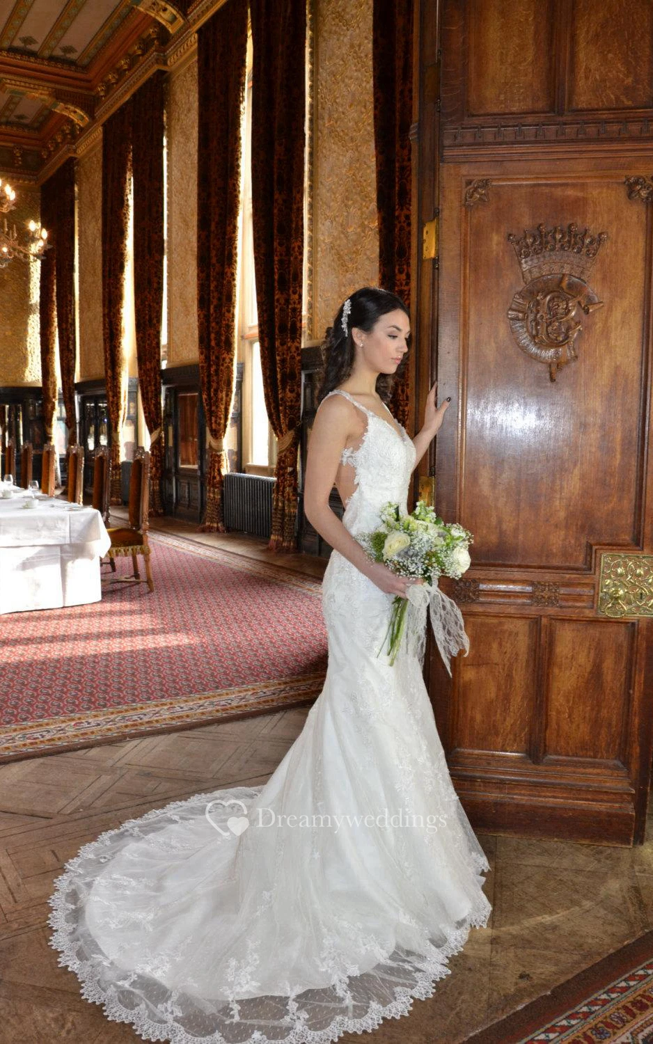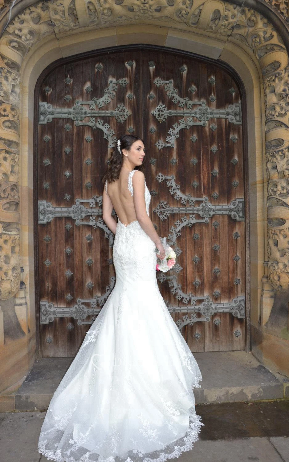 Sassy Backless V-Neck Sleeveless Mermaid Lace Bridal Gown