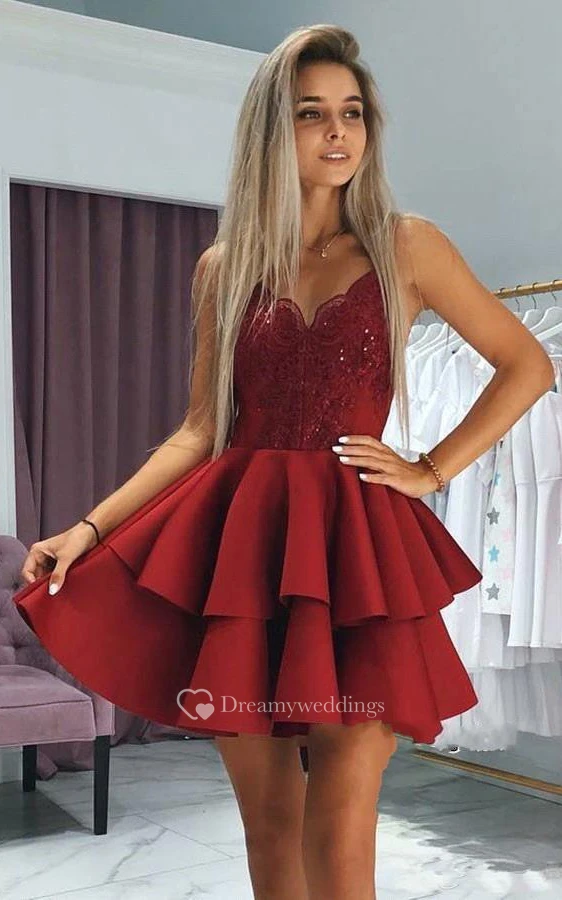 Satin A Line Backless Zipper Sleeveless with Lace and Tiers Homecoming Dress