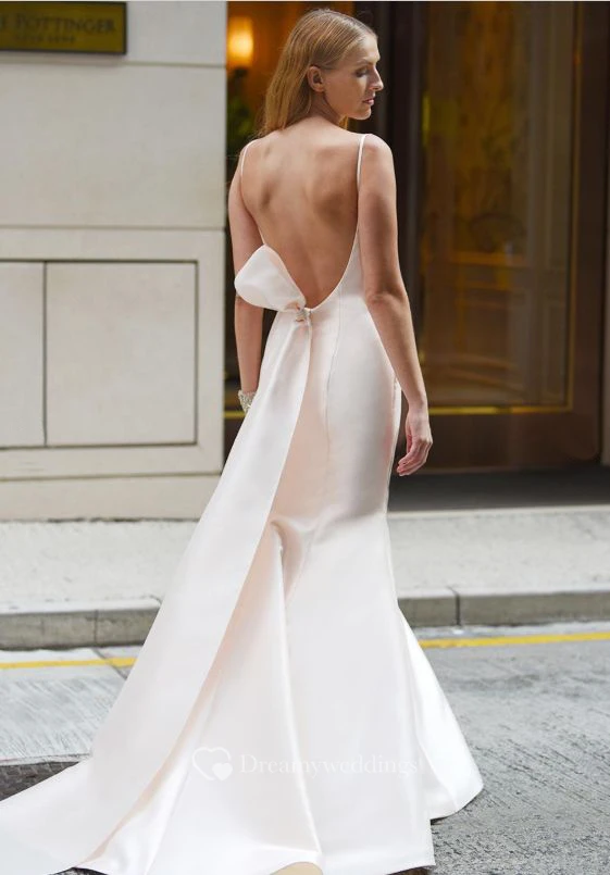 Satin Bateau-neck Open Back Sleeveless Wedding Dress with Bow