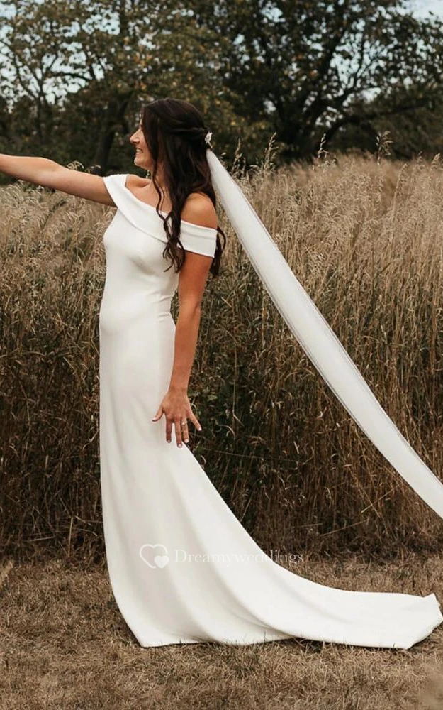 Satin Floor-length Court Train Trumpet Sleeveless Casual Wedding Dress