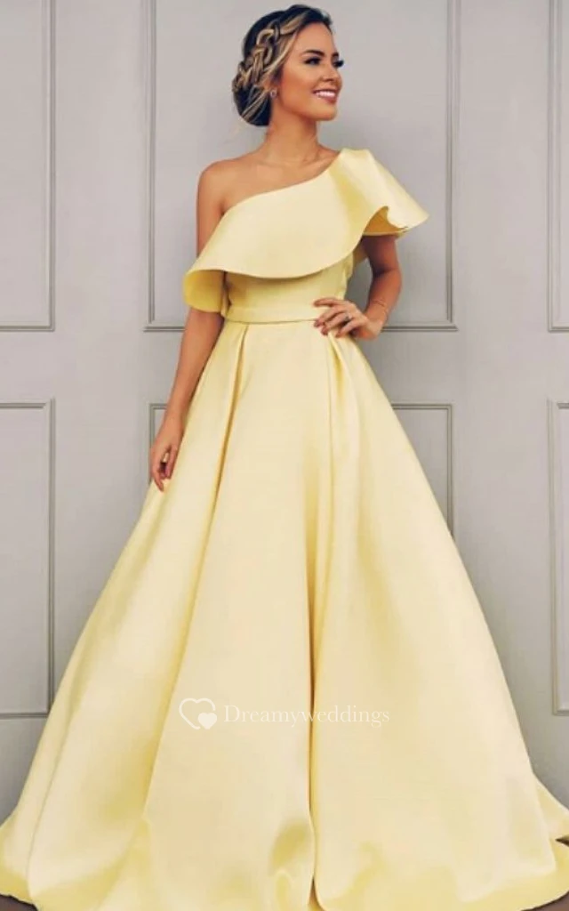 Satin Floor-length Sweep Train A Line Sleeveless Modern Formal Dress with Ruffles