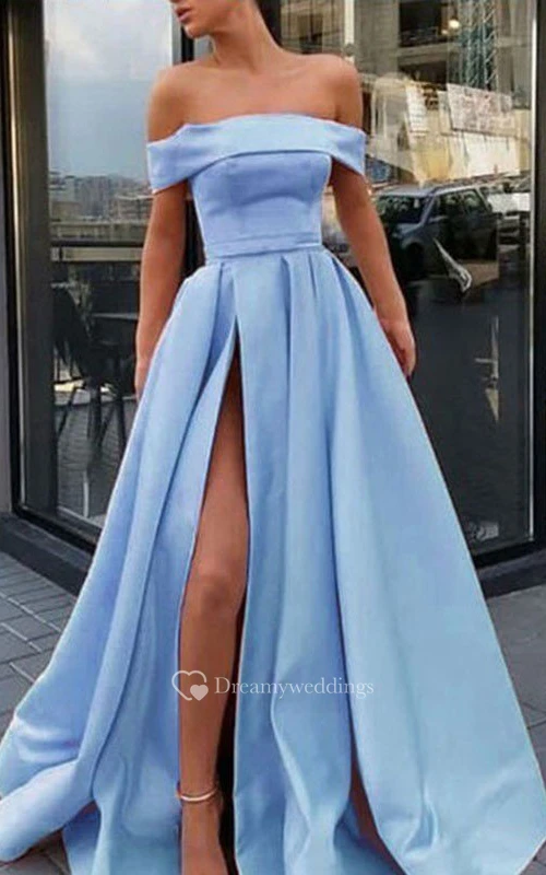 Satin Floor-length Sweep Train A Line Sleeveless Modern Prom Dress with Ruffles