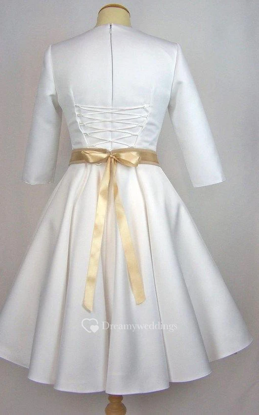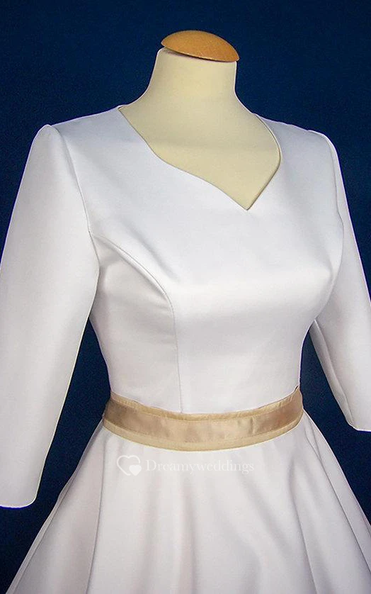 Satin Half Sleeve V-Neck A-Line Dress With Bow Sash