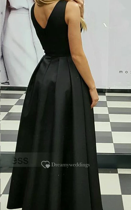 Satin High-Low A Line Sleeveless Sexy Prom Dress with Pleats