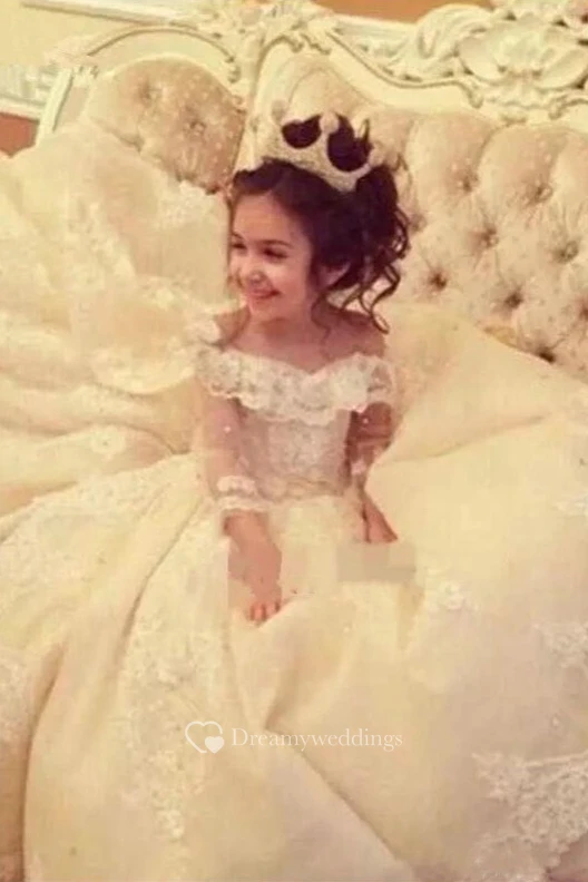 Satin Off-the-shoulder Corset Ball Gown Flower Girl Dress