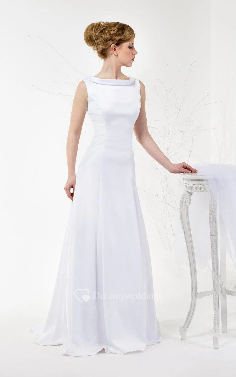 Satin Sleeveless A-Line Cowl Neck Dress With Deep-V Back