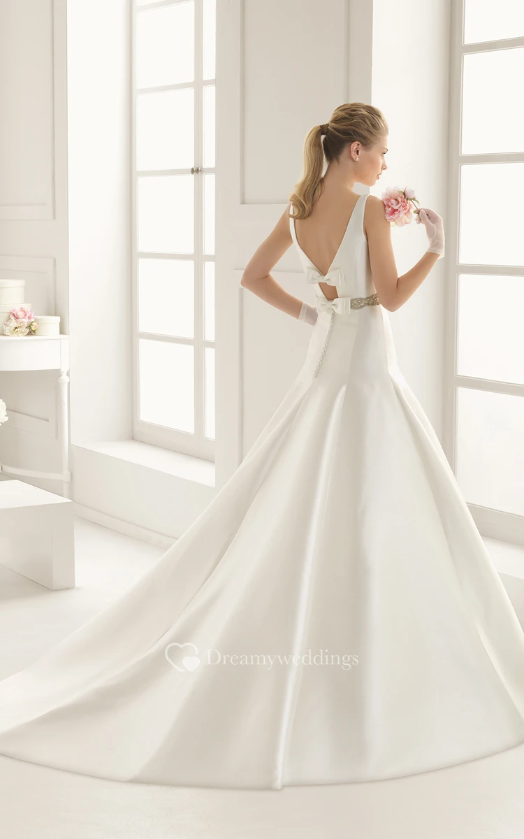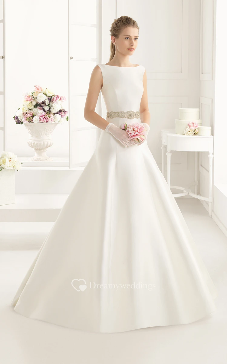 Satin Sleeveless A-Line Dress With Beaded Sash