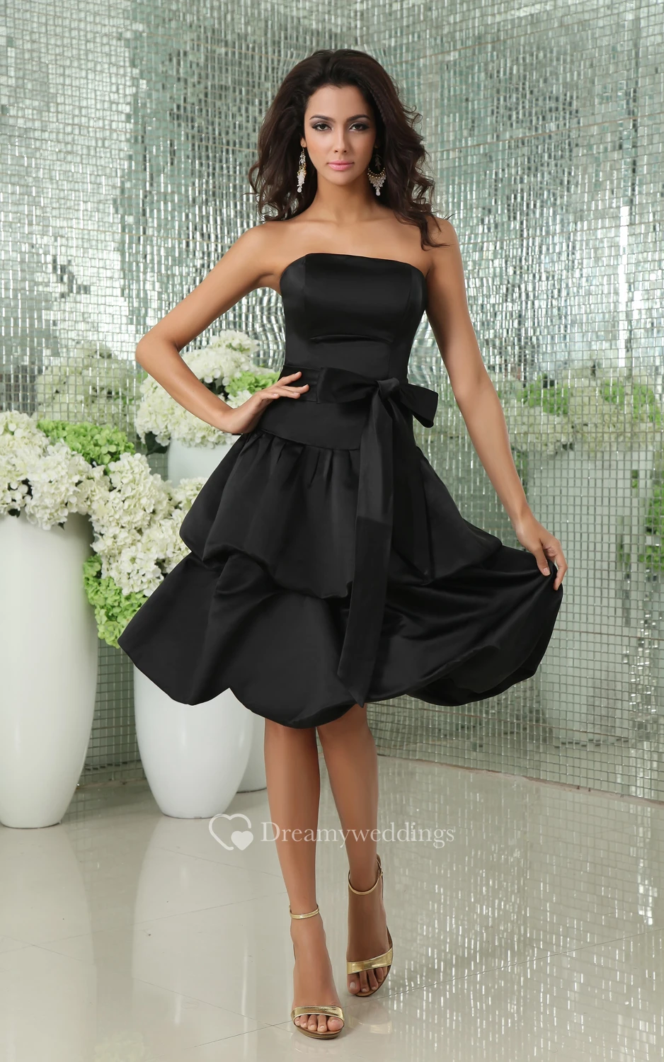 Satin Strapless Short Dress With Ribbon and Layered Skirt