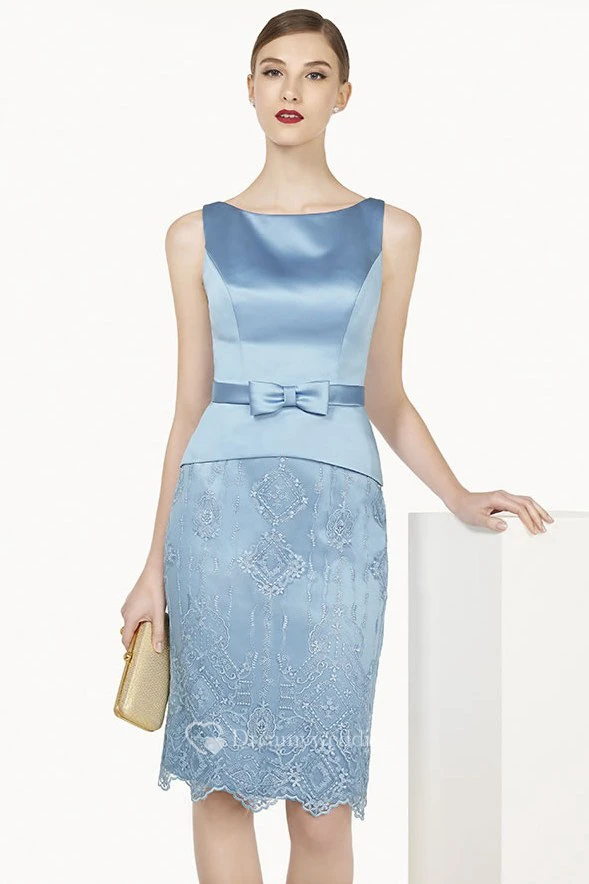 Satin Top Lace Knee Length Prom Dress With Bow Sash And Removable Jacket