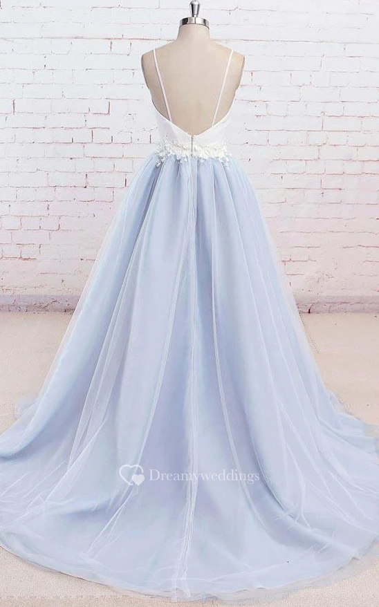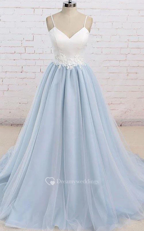 Satin Tulle Floor-length Brush Train A Line Sleeveless Casual Prom Dress with Appliques