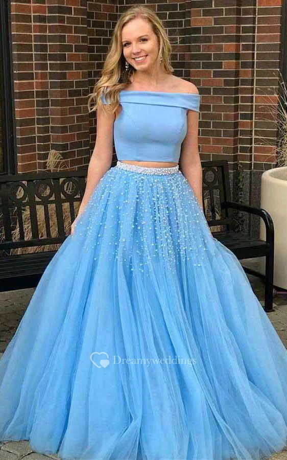 Satin Tulle Floor-length Brush Train Two Piece Sleeveless Modern Formal Dress