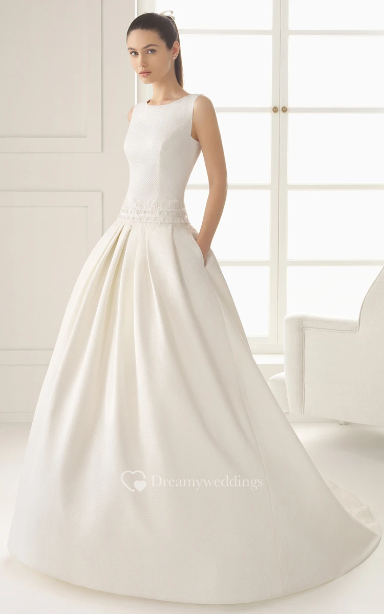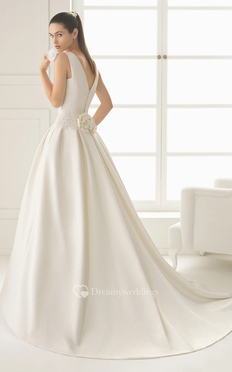 Satin V Back Gown With Pockets And Flower At Back