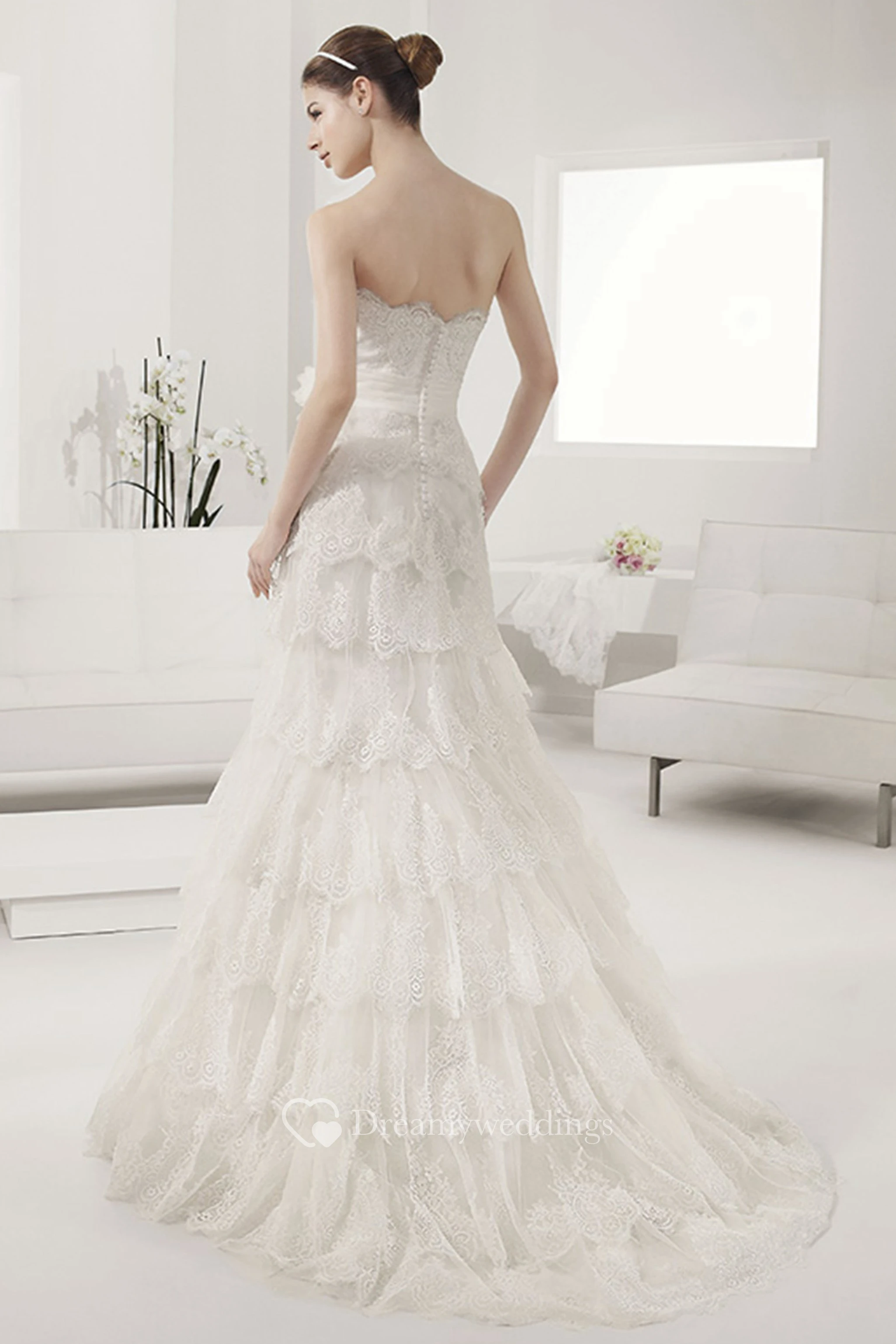 Scalloped Neck Lace Ball Gown With Waist Flower And Layered Skirt