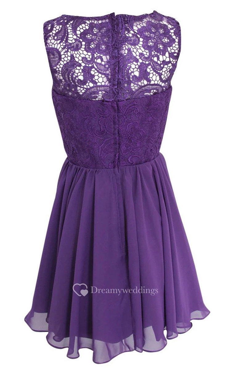 Scoop A-line Short Dress With Lace Bodice and Appliques