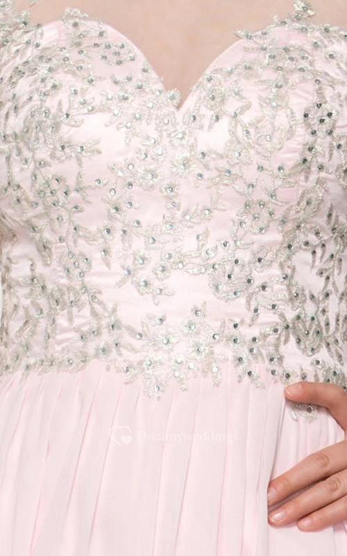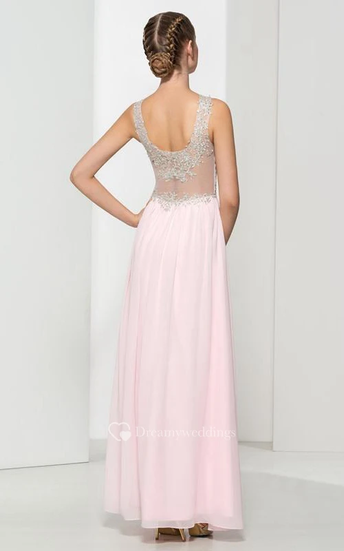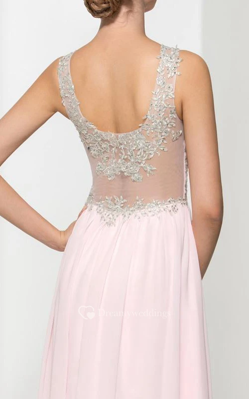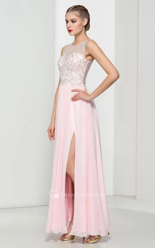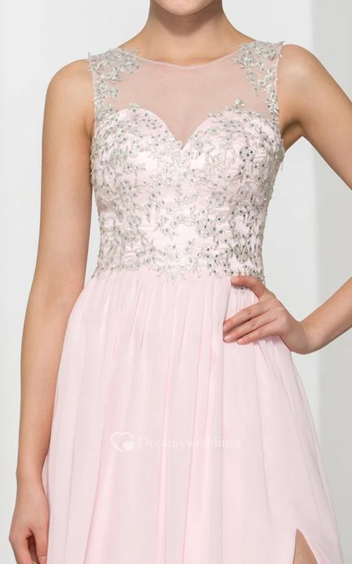 Scoop Neck Appliques Sequins Split-Front Prom Dress