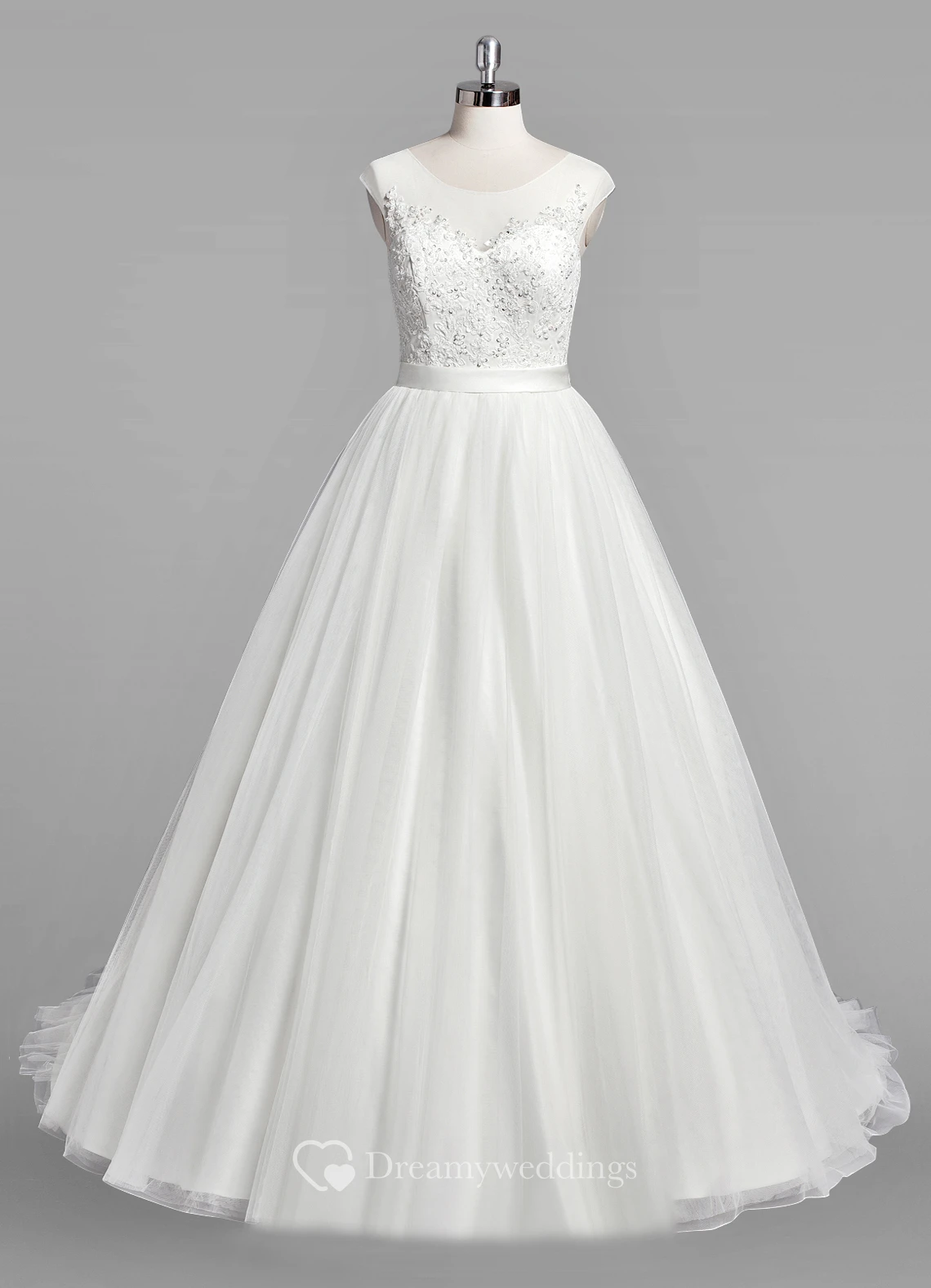 Scoop Neck Cap Sleeve A-Line Tulle Wedding Dress With Beaded Bodice