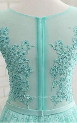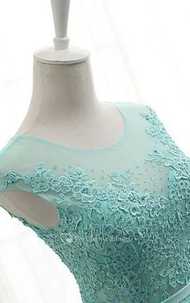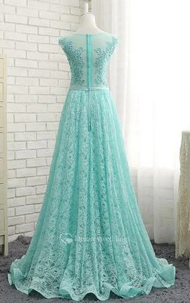 Scoop Neck Cap Sleeves Appliques Sequins Prom Dress