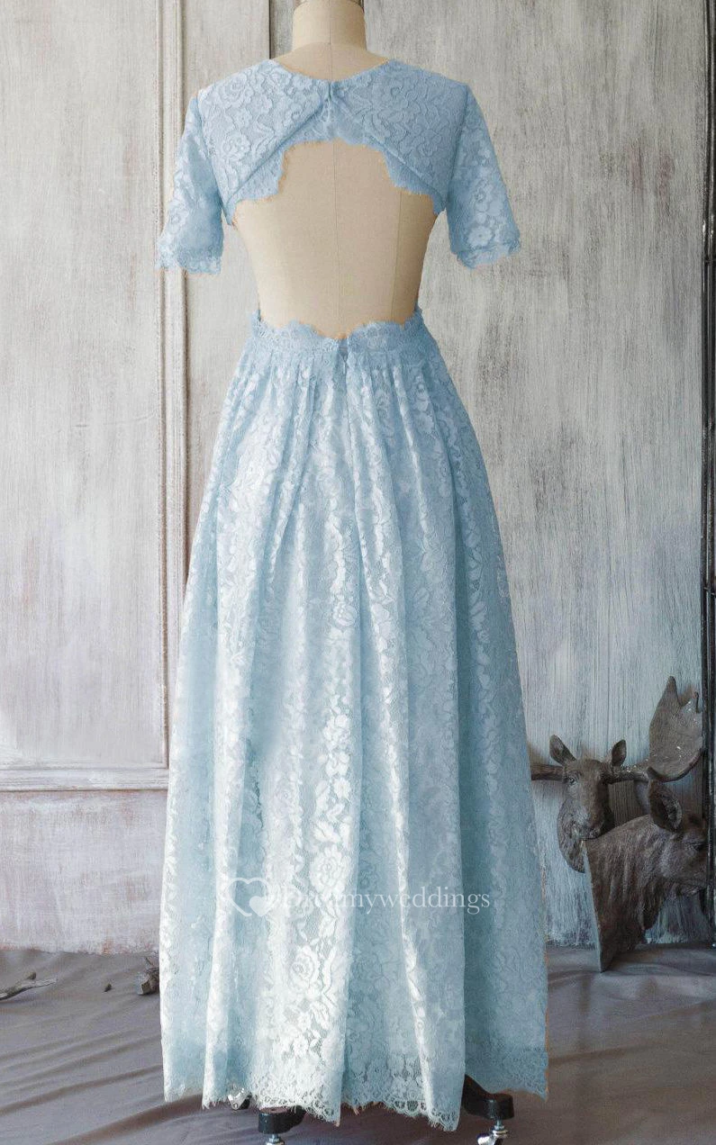 Scoop Neck Half Sleeve A-line Pleated Lace Ankle Length Dress With Keyhole