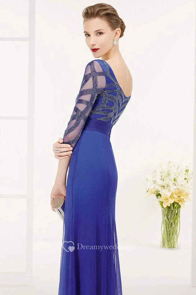 Scoop Neck Half Sleeve Tulle Long Prom Dress With Sequined Top