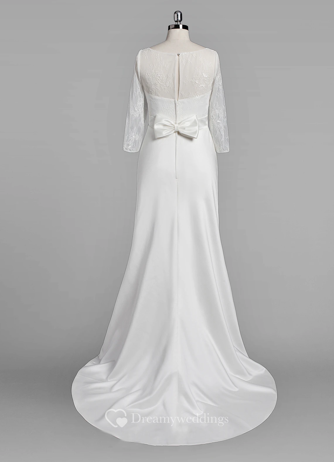 Scoop Neck Long Sleeve Sheath Satin Wedding Dress With Lace Bodice